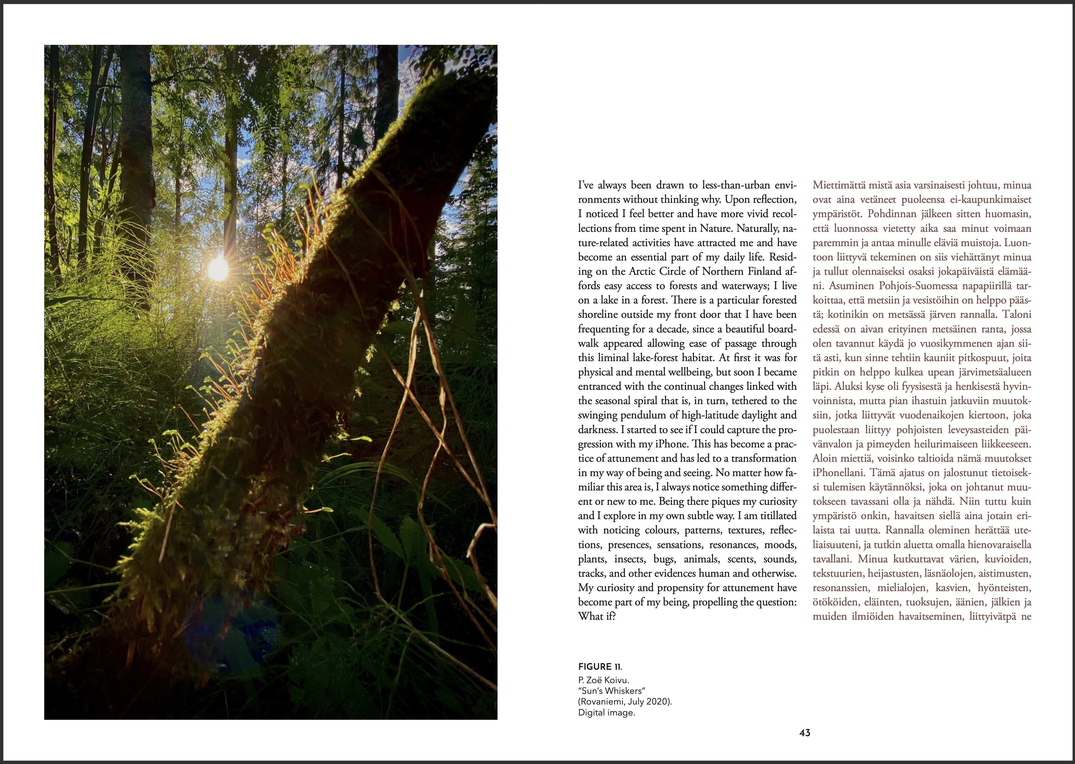 My fascination is following and photographing the seasonal spiral, particularly along the forested shoreline outside my home where I live on the Arctic Circle of Northern Finland. Please contact me if you are interested in using my images or would like to know more about them.